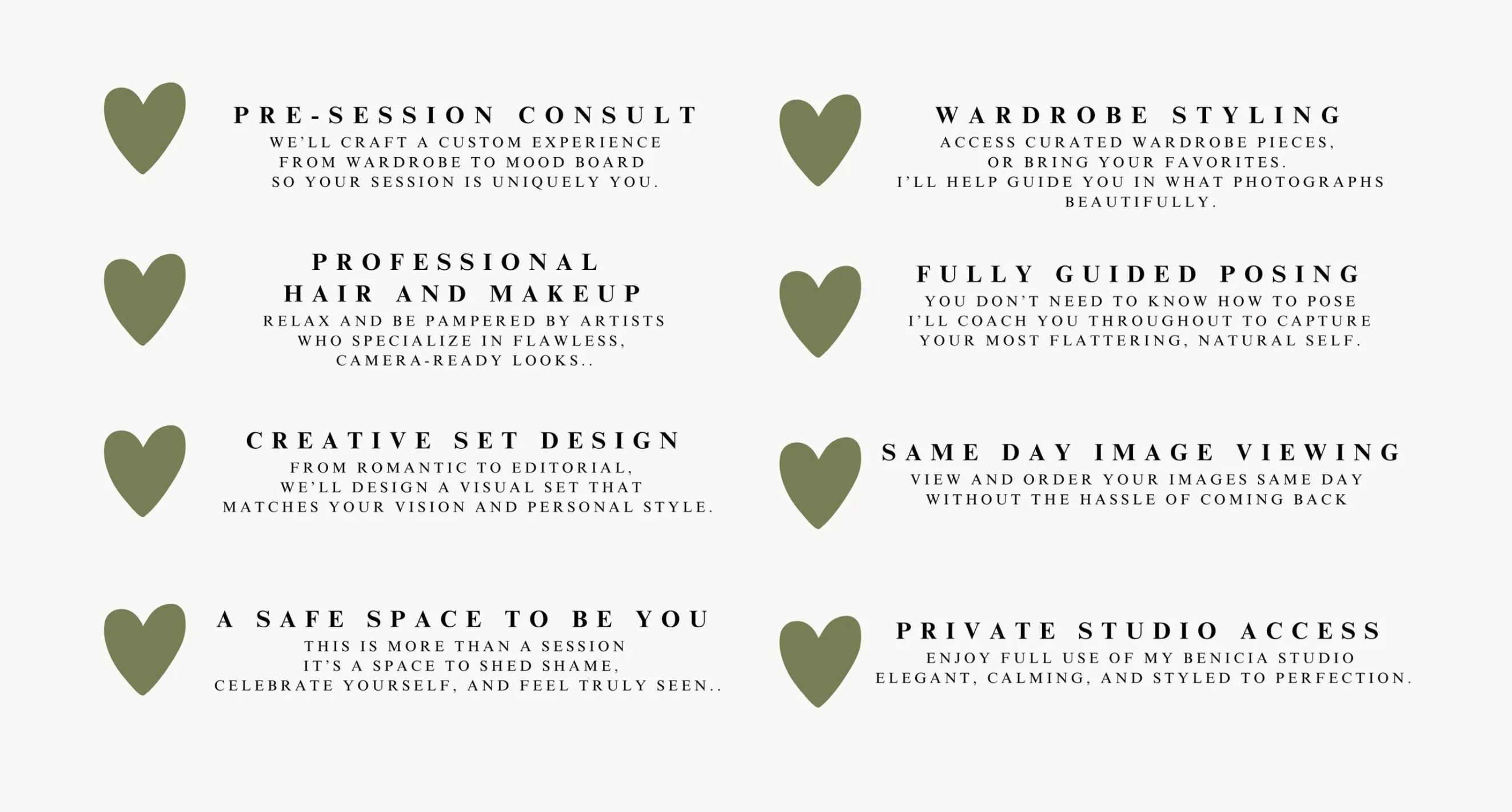 A session that’s completely tailored to you — from wardrobe and music to posing that honors your comfort and beauty